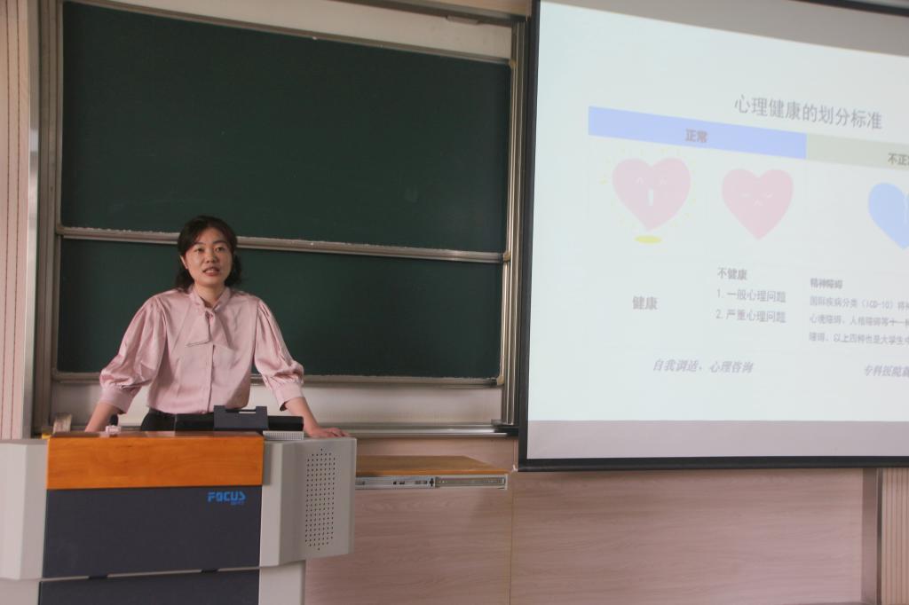 会议开始,蒋艳着眼于大学学习特点,围绕“老员工活从‘心’开始,璀璨青春逐梦未来”主题进行分享,从用心学习、安心生活和心理健康三方面进行讲述,言语亲切,事例典型,为新生更好地适应老员工活提供了中肯建议和悉心指导。