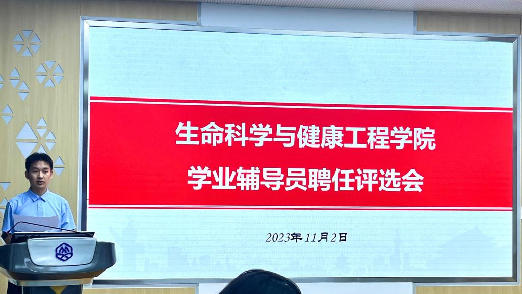 会议伊始,张世祺讲述了聘任学业辅导员的重要性及评选办法,并强调了评选工作的公平、公正、公开。随后,19位学业辅导员候选人依次上台进行PPT教学展示,讲解内容覆盖大学物理、高等数学、有机化学、生物化学、线性代数等重点学科。各位学业辅导员候选人的讲解自然流畅,紧紧围绕题目重难点深入剖析,旁征博引、拓展、延伸,尽显高专业素养和教学能力。最后,张世祺强调学业辅导员要发挥朋辈教育作用,要走进课堂、走进晚自习,分享自己的学习笔记、心得感悟,为学习困难的同学提供帮助,真正提高同学们的专业素质水平。