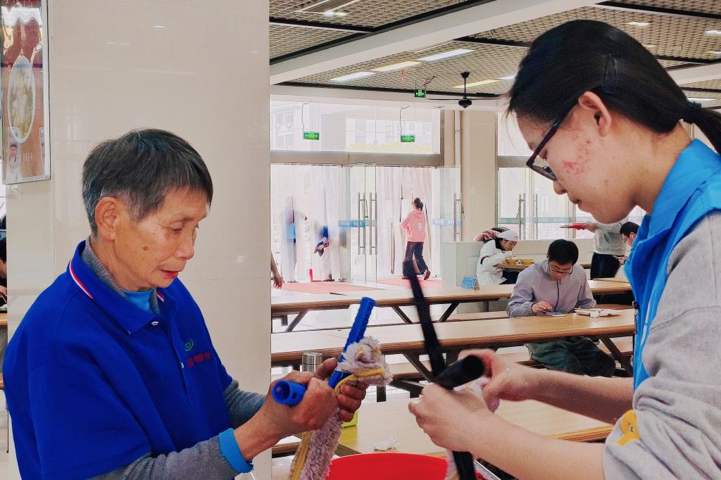 “虽然这次的工作只是帮助食堂工作者收餐盘碗筷,但是想到能给大爷大妈们带来帮助,听到同学们一声声简单的‘谢谢’时,我的心里充满了幸福感和成就感。因帮助他人而获得的快乐,不仅让我的内心更充实,还鼓舞着我日行一善、助人为乐,有一分热,发一分光。”志愿者崔瑞轩说道。