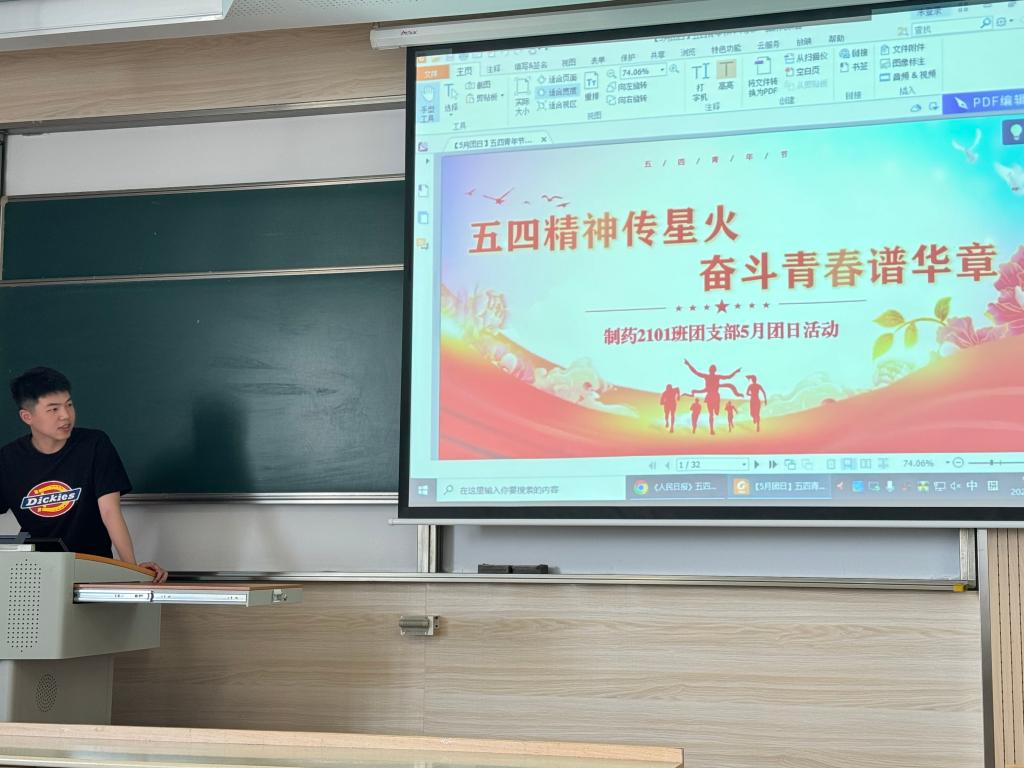 制药2101班团支部开展以“五四精神传薪火,奋斗精神谱华章”为主题的团日活动。活动伊始,团支书简要介绍了五四运动的历史背景及其深远影响,强调了五四精神在当代青年中的重要地位,阐述了习近平总书记对青年人的殷切期望。接着,团支书组织同学们观看五四运动相关视频和资料,深入了解五四运动和青年员工的奋斗历程,视频中青年员工们高举旗帜、英勇斗争的场景让同学们深受震撼,也让他们更加深刻地认识到了五四精神的核心内涵——爱国、进步、民主、科学。五四精神是激励青年员工奋发向上的精神力量,团支书在总结时提出展望,希望同学们能够继续传承和弘扬五四精神,将其融入日常的学习和生活中,不断追求卓越、实现自我超越。他鼓励同学们要勇于担当、敢于创新,以实际行动践行五四精神,为国家的繁荣富强和民族的伟大复兴贡献青春力量。