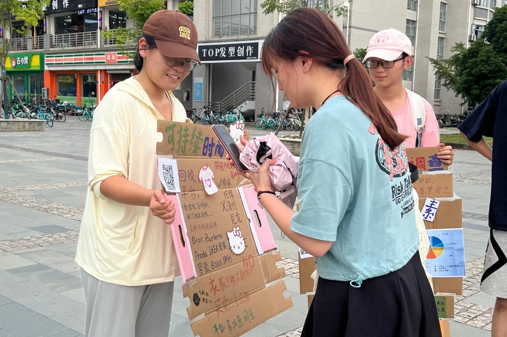 青春之青,绿色之行。为了提高同学们的环保意识,树立绿色循环的理念,青春“绿”动实践团围绕旧衣物回收利用主题展开调查与分析,并收集废旧纸板、包装袋等制作主题展板,在williamhill校园内开展快闪活动,吸引许多同学驻足观看。