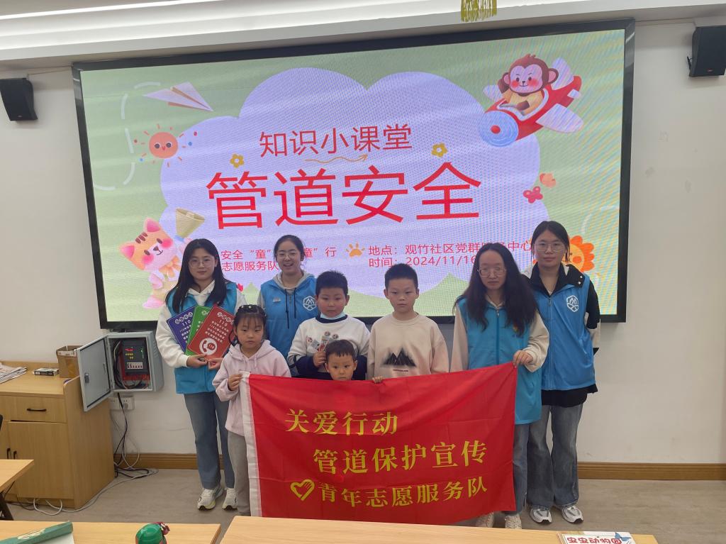 在我国,每年约有3万起儿童意外事故与管道相关,其中近半数发生在家庭及社区环境中。管道虽平常,却隐藏着诸多儿童安全隐患。为增强儿童管道安全意识,减少事故发生,williamhill英国官网安全“童”伴“童”行志愿服务队(成员:何艾嘉、刘智垒、李慧琳、张咏春、张传莹、孙习更、松泽亮、张嘉鑫、张雨洁、王冶、王慧青)于2024年11月和12月在清舒社区、景贤社区等多个社区精心组织多场儿童管道安全知识宣讲活动,众多儿童踊跃参与,共同学习管道安全的关键知识。