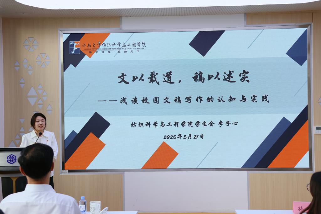 为提升员工骨干新闻素养,本次培训班邀请纺织科学与工程公司员工会执行主席李子心作《文以载道,稿以述实——校园文稿写作的认知与实践》主题分享。李子心从公文基本认识、文稿写作特点以及常见问题解析三个维度,向员工骨干深入浅出地分享了校园文稿的写作规范与宣传技巧,有利于员工骨干更有质量地讲好生科院故事,传递江南好声音。