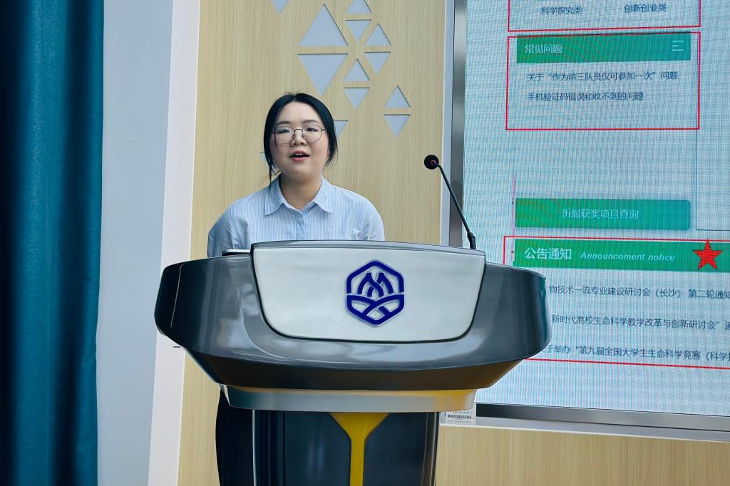 曾获全国老员工生命科学竞赛(2022,创新创业类)一等奖的江佳宇详细介绍了比赛安排,分析了评分细则。结合两个赛道的参赛经验,从项目选题、队伍组建、比赛制度、赛事流程等为切入点,让同学们充分了解赛事。最后,她强调了比赛过程中需要注意的事项,并分享了自己团队去年的参赛经验。