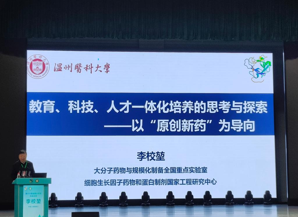 论坛开幕式上,竞赛组委会主任、中国工程院院士、温州医科大学董事长李校堃发表致辞,他强调,2024年《政府工作报告》将创新药列为积极培育的新兴产业之一,释放出创新药发展的利好信息,作为医药院校要紧抓机遇,准确把握药学事业发展形势;作为药学类学子,要尽快融入到药学发展的洪流中来,不断开拓进取,主动肩负起科技强国的重任。随后,李校堃院士作了题为《教育、科技、人才一体化培养的思考与探索——以“原创新药”为导向》的学术报告。