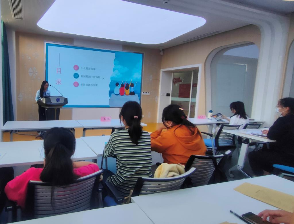 黄梦迪为同学们讲解了新闻稿的写作技巧和要求。她提到,新闻稿尤其要保证真实性和时效性。她结合自身经验和实际范例,就新闻稿的标题、导语、背景、主体和结语等写作方法逐一讲解,并结合“杏林微雨”推送范例进行详细解析,建议学员要多看多写,在不断地练习、修改中提升撰写水平。