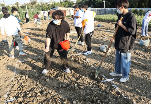 随后同学们以小组为单位,领取了大滨菊种子和种植工具开展种植实践。松土、播种、浇水......同学们兴致高涨,分工明确,相互协助,努力劳动,俨然已经成为一个合格的“小药农”了。夕阳西下,种植活动也已接近尾声。大家合影留念过后,第一次药草种植活动圆满结束。