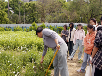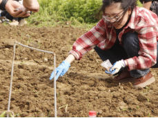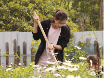 恰逢昨日谷雨时节的一场春雨湿润了花田,小组成员们的翻土工作也在紧锣密鼓地进行着。