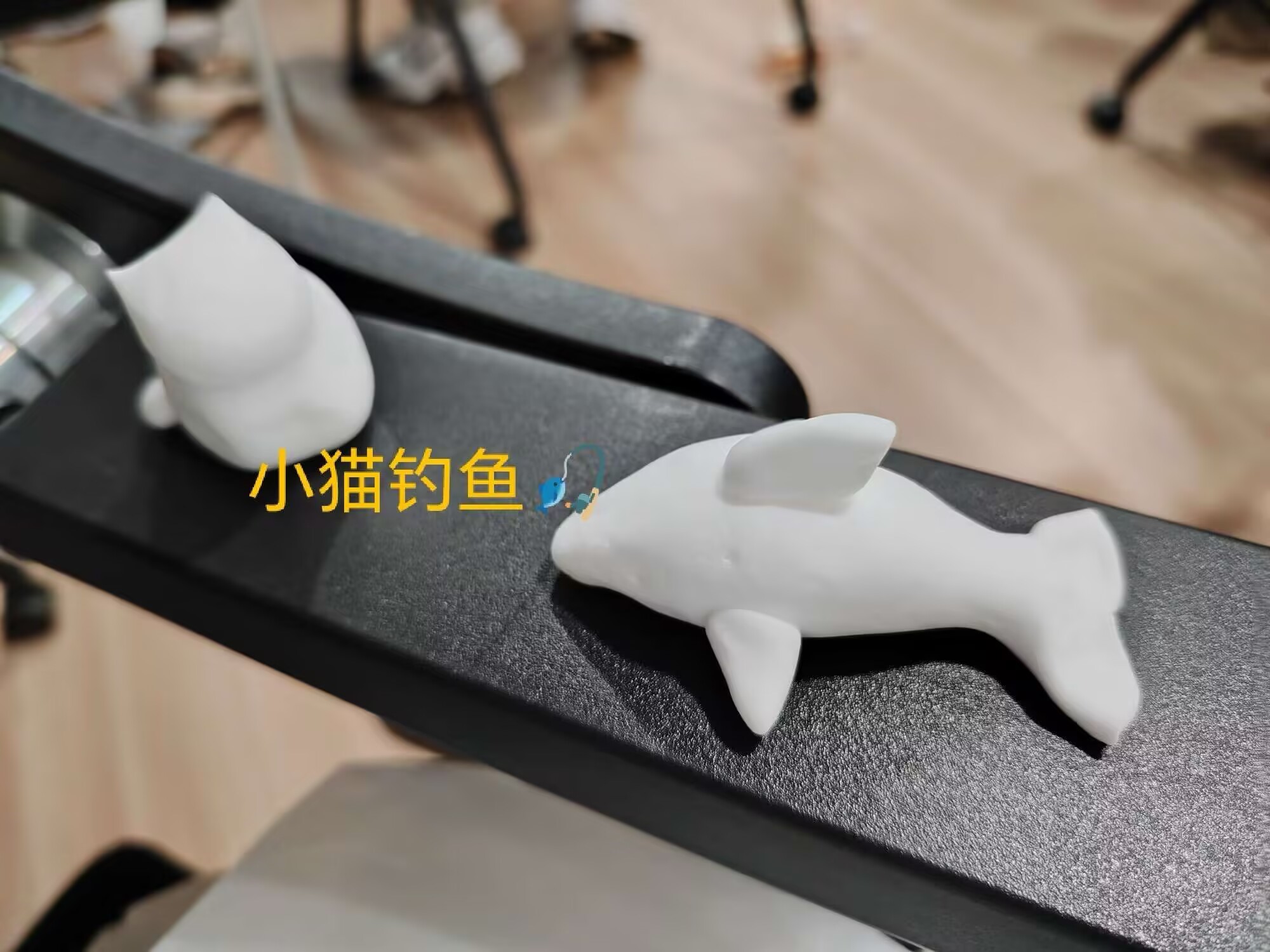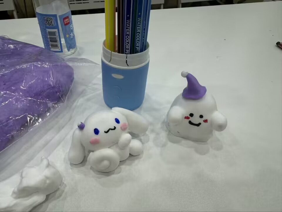 在活动进行过程中,同学们完成了一些小游戏,其中包括“你好”和“你捏我抟”等。“你好”需要同学们以不同语气相互打招呼,包括委屈,疲惫,喜悦的语气等。而“你捏我抟”则需要同学们用黏土捏出代表自己的小动物,并将其放如入提前备好的宿舍示意图里。这期间也不乏许多优秀的作品。比如“小猫钓鱼”,“五花肉”等。这不仅是同学们精美的手工作品,同时也寄寓着大家对老员工活的期待。
