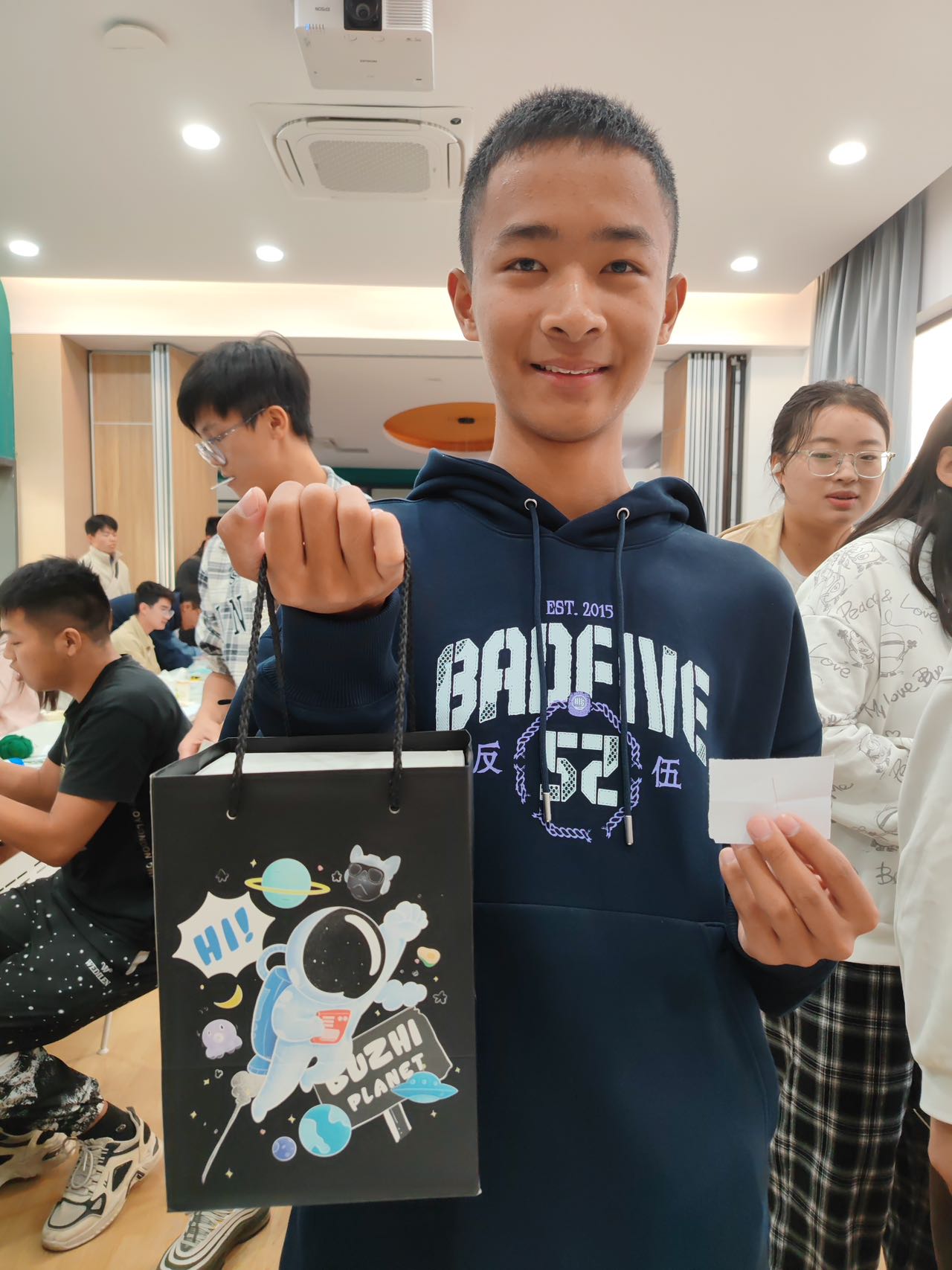 经过一系列精彩纷呈的摊位活动后,同学们手中的卡片上已经逐渐贴满了贴纸。这些贴纸是他们参与各项活动所获得的奖励,也是他们努力探索的见证。当同学们集齐八张贴纸后,便可以前往抽奖区参与抽奖活动。抽奖区准备了丰富的奖品,包括精美的文具、实用的生活用品等。每一位参与抽奖的同学都满怀期待地抽取着自己的奖品,而抽奖结果也带给了他们满满的惊喜和欢乐。